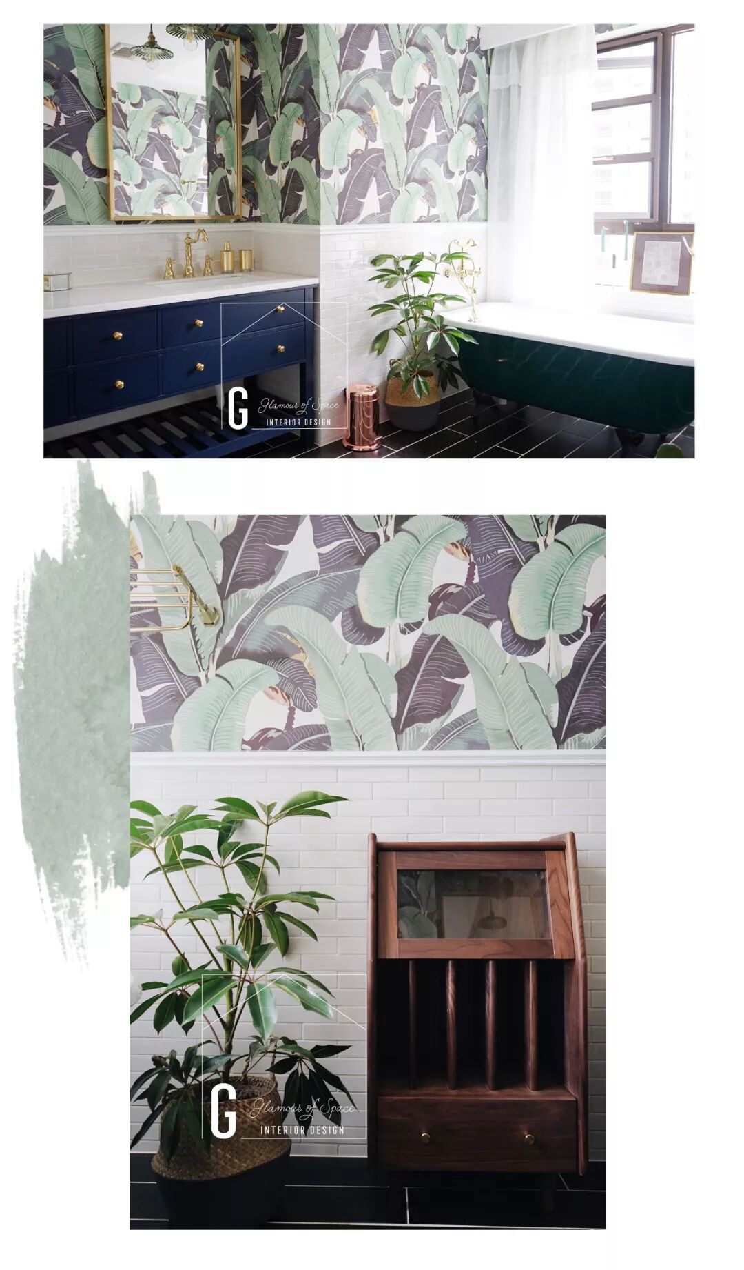 主卫我们选用了绿色的天堂鸟墙布