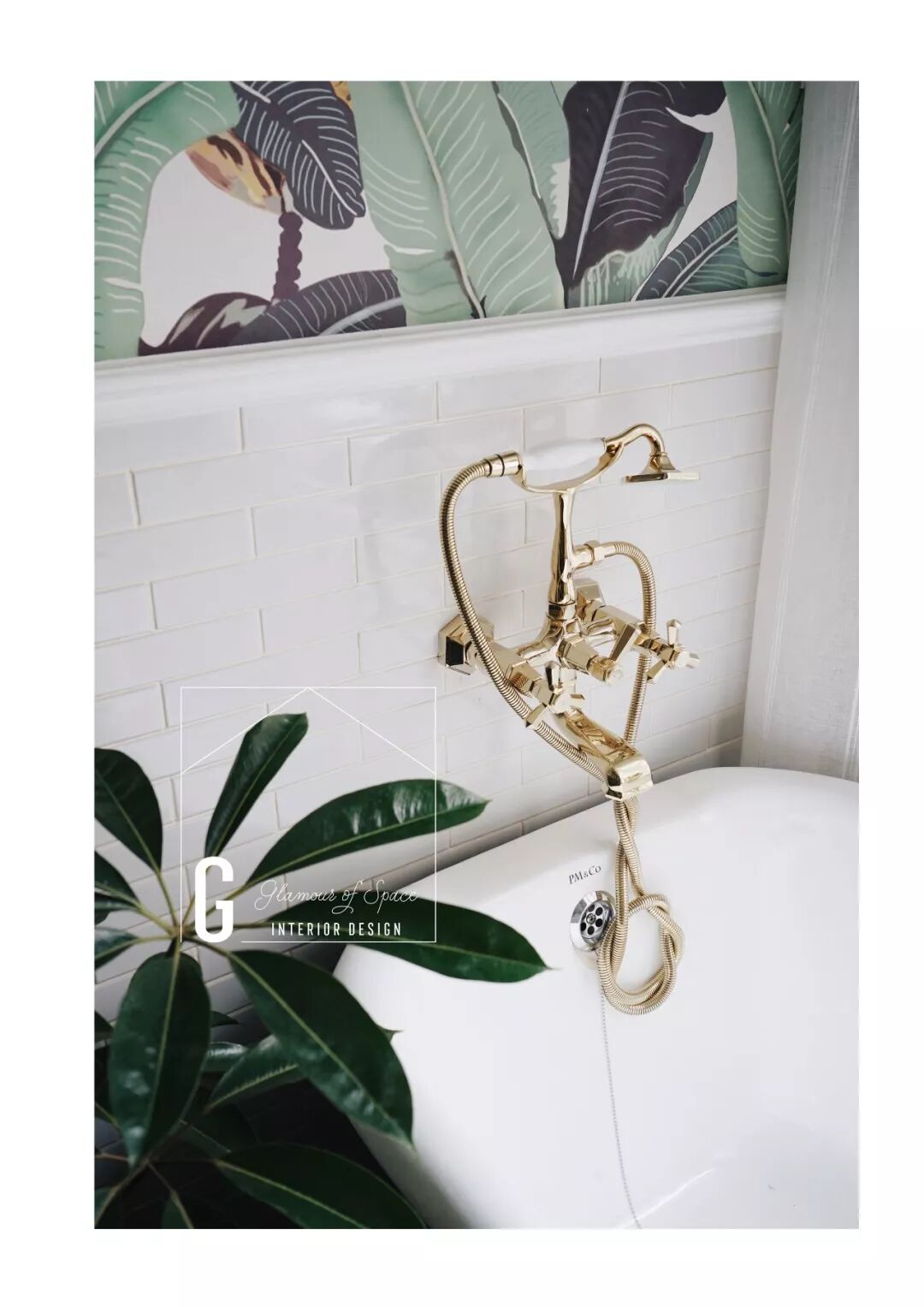 搭配上墨绿色的太妃浴缸及金色水龙头